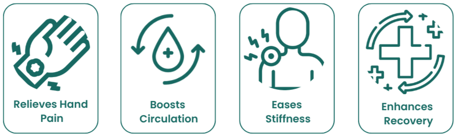 The soothing warmth helps relax tight muscles and ease stiffness. Combined with targeted massage, it improves blood flow and supports joint health.